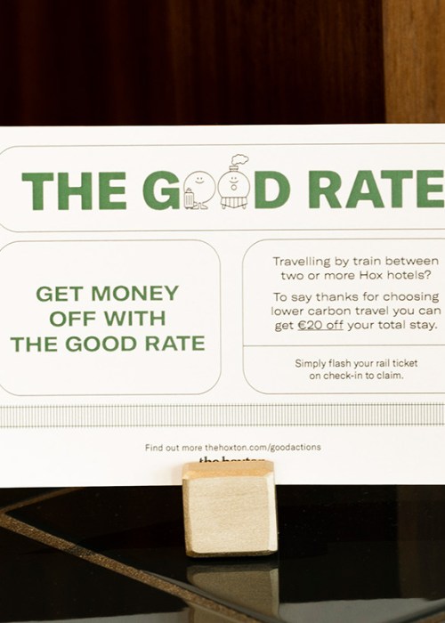 And this is the inspiration behind The Hoxton’s introduction of The Good Rate; to reward guests who choose to travel more sustainably whilst staying at two or more Hox hotels. Whether it’s bouncing around for business or embarking on a European city hop, The Hoxton will take £20/$20/€20 off the room rate at each location booked as part of a multi-Hox trip navigated by rail.